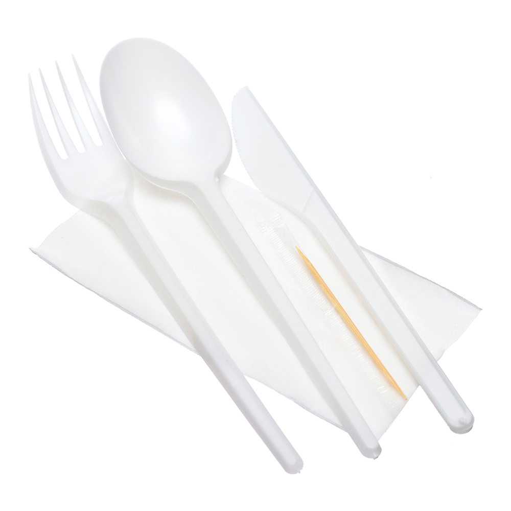 Набор №5 (ложка+вилка+нож+зубочистка+салфетка) белый ПС